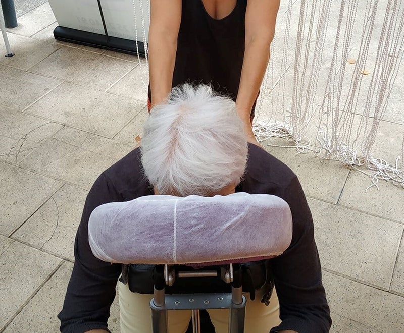 C'est un massage qui se pratique habillé sur une chaise ergonomique.